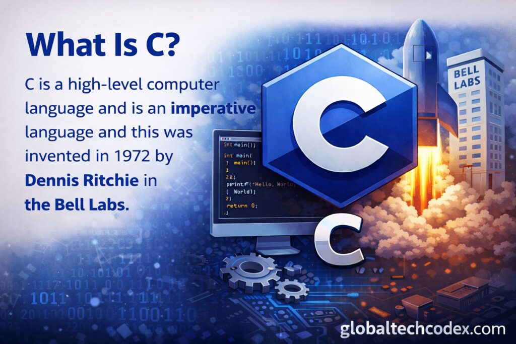C is a high level computer language and is an imperative language and this was invented in 1972 by Dennis Ritchie in the Bell labs.