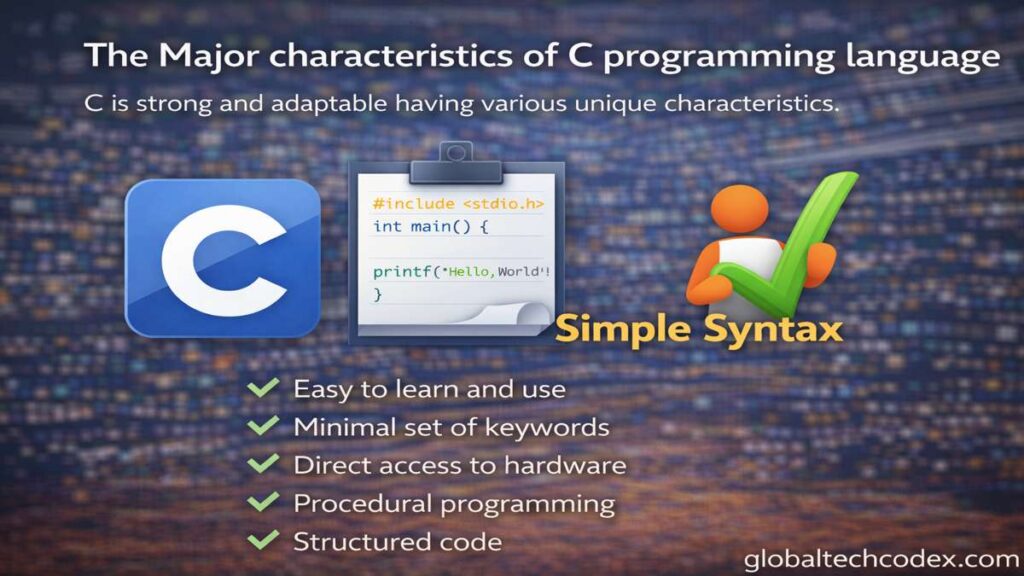 The syntax of C language is very easy compared to some of the modern languages. This convenience helps in facilitation of the understanding of logic of programs easily.