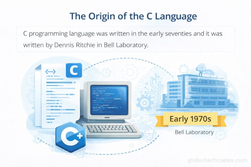 C programming programming language was written in the early seventies and it was written by Dennis Ritchie in Bell Laboratory. It was even initially intended to make system software, the UNIX operating system.