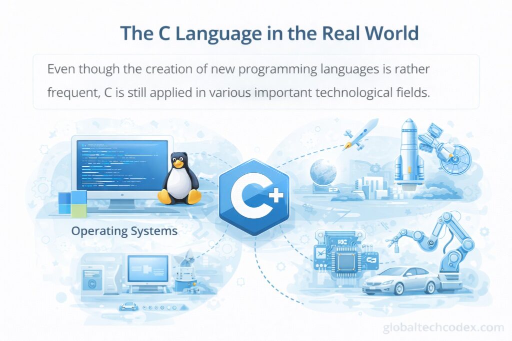 Even many decades later, C is still in use in operating systems, embedded systems, networking tools and most high-performance applications.