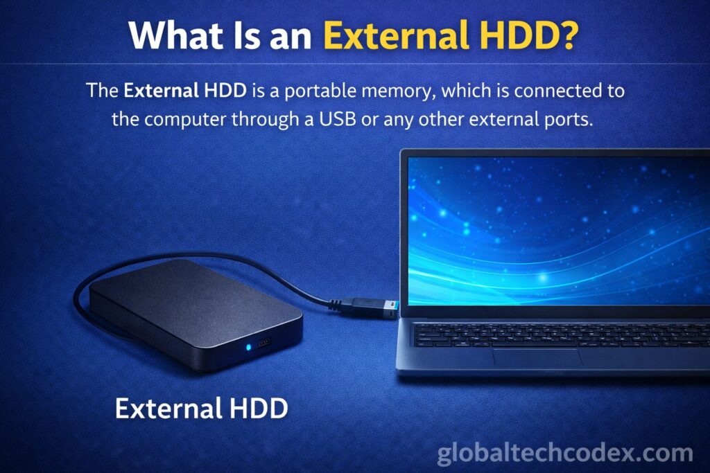 The Externals HDD is a portable memory, which is connected to the computer through a USB or any other external ports.