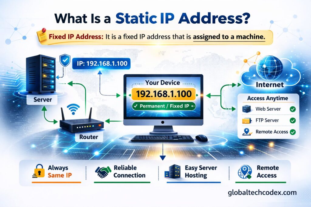 A fixed IP address is a digital address that is fixed and cannot be changed that is given to a device. It offers stability, reliability and regular accessibility, which is important to servers, businesses, and work-related network systems.