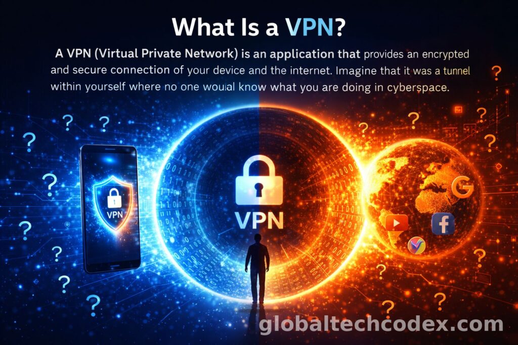 A VPN (Virtual Private Network) is an application that provides an encrypted and secure connection of your device and the internet. Imagine that it was a tunnel within yourself where no one would know what you are doing in cyberspace.